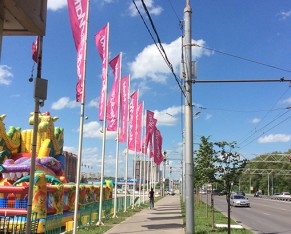 Изготовление флагов и нанесение на них изображения для различных рекламных мероприятий, соревнований, акций, концертов, детских праздников – одна из самых востребованных услуг в полиграфическом деле. Флаги, вымпелы и знамёна – это недорогие рекламные носители, которые раздаются на мероприятиях и эффектно представляют определенную компанию, ее фирменный стиль, а также предлагаемые товары или услуги. Нередко флаги на заказ являются интересной, красочной сувенирной продукцией, которая так приятна для ваших клиентов или постоянных заказчиков.
