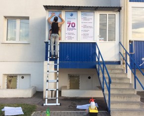 - монтаж наружной рекламы на улицах города. Наши мастера закрепят растяжки, натянут баннеры, установят стенды;