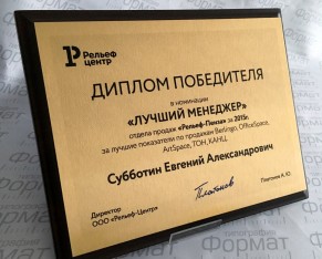 Плакетка – особая наградная доска, благодарность или грамота, широко распространенная в современных компаниях. Внешне плакетка представляет собой деревянную подложку, на которую монтирована металлическая пластина, как правило, на ней нанесен логотип фирмы и какая-либо поздравительная гравировка, в зависимости от случая и торжества. Сама по себе плакетка выглядит гораздо представительнее, чем диплом в рамке, и является отличным корпоративным подарком отличившемуся сотруднику как памятный сувенир.